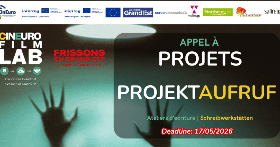 La Région Grand Est, via le Cineuro Film Lab, en partenariat avec screen.brussels et Wallimage, en collaboration avec la Scénaristerie et l’appui de la SAFIRE Grand Est, déploie une résidence d’écriture transfrontalière dédiée au cinéma de genre, articulée autour de quatre rencontres structurantes en présentiel entre 2026 et 2027.
