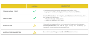 Im Rahmen der Delegation und gemäß den Förderkriterien des Interreg-Programms gelten für den Zeitraum vom 3. bis 5. März 2026 folgende Bedingungen: