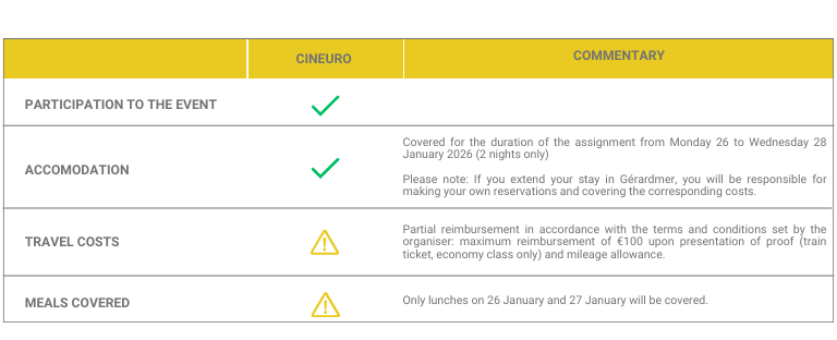 On the occasion of the Gérardmer International Fantastic Film Festival (January 27 – February 1, 2026), the CinEuro Film Lab, led by the Grand Est Region as the lead partner of the CinEuro project, is launching a call for applications for its new programme “FRISSONS EN GRAND EST”, with the aim of forming a delegation of 10 professionals, to be held from Monday January 26 to Wednesday January 28, 2026.